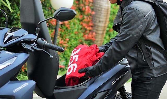 Kelima, simpan perlengkapan penunjang cuaca dan perawatan. Jas hujan menjadi perlengkapan penting yang sebaiknya selalu tersedia di bagasi, dengan catatan disimpan dalam kondisi kering agar tidak menimbulkan jamur atau bau. Selain itu, lap microfiber juga bermanfaat untuk membersihkan debu, mengeringkan sisa air, atau merawat jok serta bagian motor lainnya tanpa menimbulkan goresan.